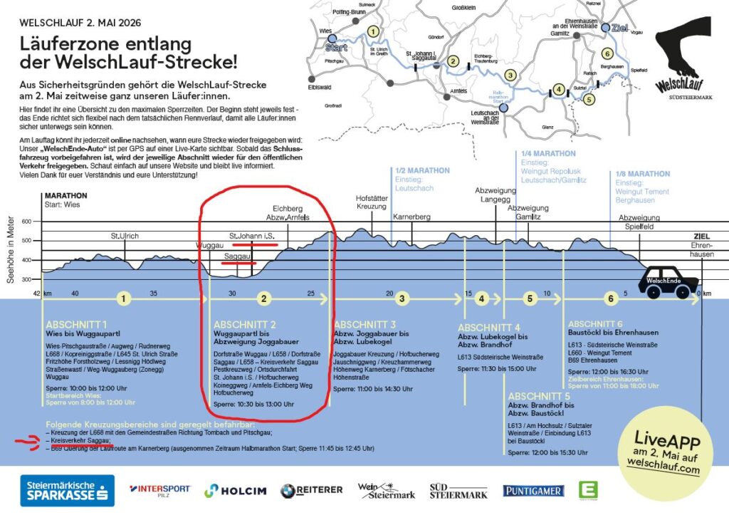 WELSCHLAUF 02. Mai – Straßensperren - Übersicht St. Johann i.S. von 10:30 – 13:00 Uhr